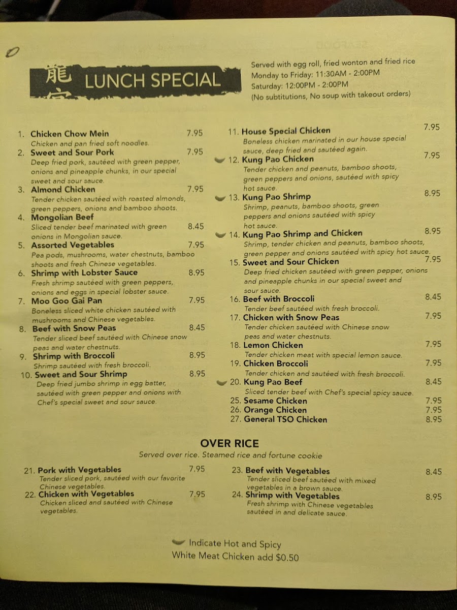 Speaking of experiences, a regular customer, Jeremy A, fondly remembers visiting for over 20 years, highlighting the ever-consistent quality of dishes like the shrimp fried rice and egg drop soup—comfort food that transports you right back to your favorite moments. And if you're looking for a perfect lunch deal, patrons rave about the lunch specials, providing generous servings of Chicken with Broccoli and Egg Drop Soup that come at an unmatched value—ensuring no one leaves hungry.